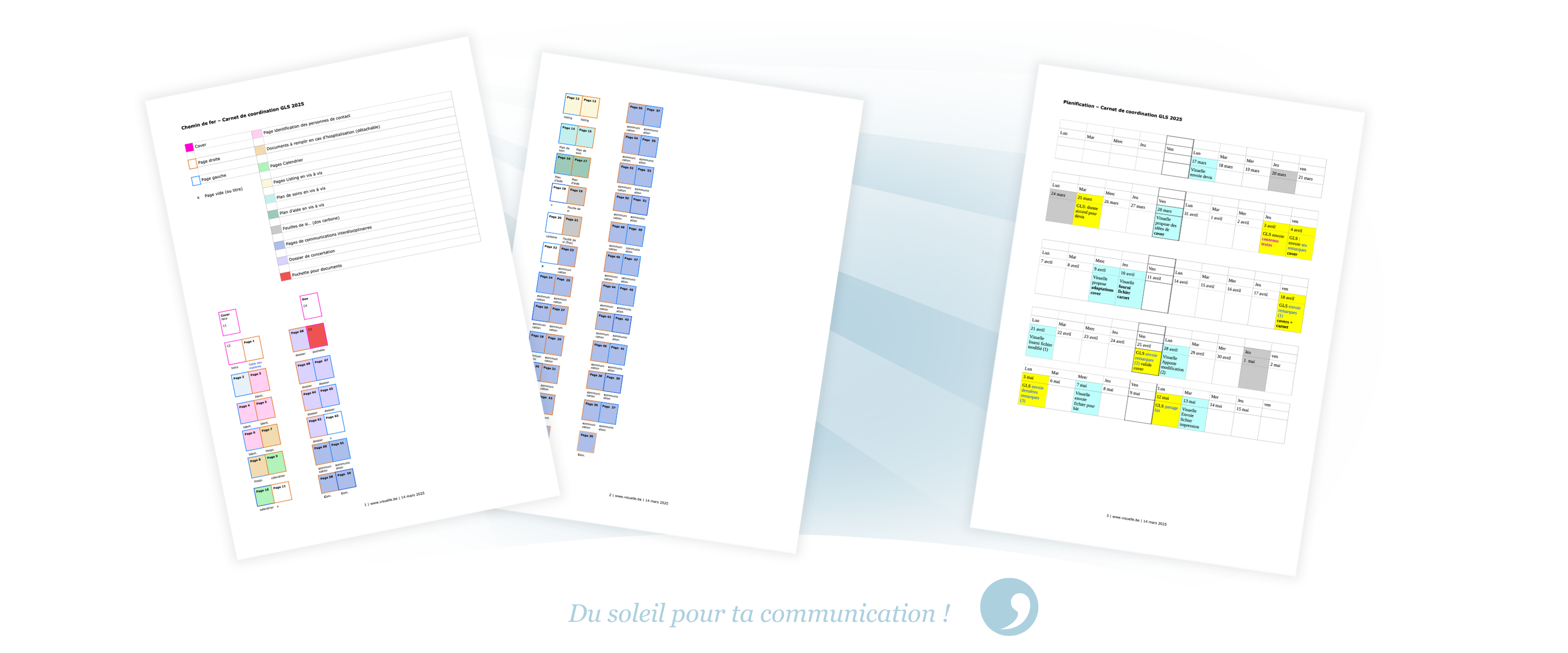 Pour un projet de mise en page, il est important de créer un chemin de fer, terme utilisé pour définir le contenu de chaque page et de s'assurer la correspondance avec le nombre de pages.