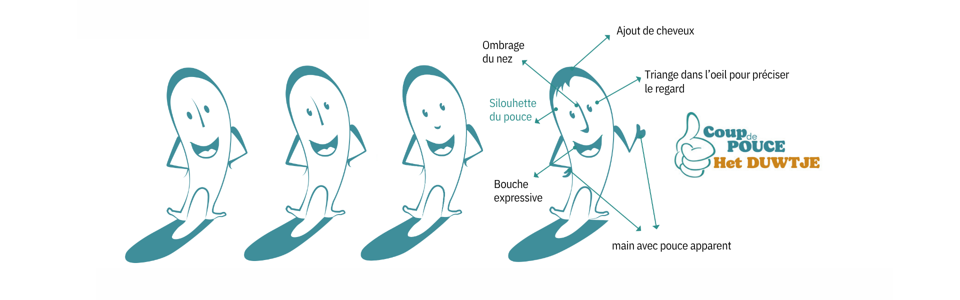Voici les premières propositions de personnage nés pour ce projet, sur l'idée d'un pouce.